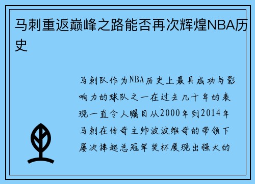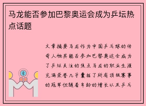 马林,作为中国羽毛球的传奇人物,曾多次在世界舞台上取得辉煌成绩。近年来,经历了伤病困扰的他宣布重返赛场,目标直指巴黎奥运会。这一决定不仅让羽毛球爱好者兴奋不已,也让人们重新审视他的职业生涯和未来潜力。本文将详细分析马林重返赛场的背景、挑战、目标以及他如何再次挑战奥运冠军的梦想,并探讨他此次复出的意义...